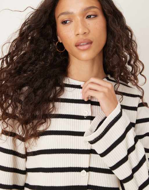ASOS DESIGN - Gestreepte top met knopen en lange mouwen in ecru, deel van co-ord set