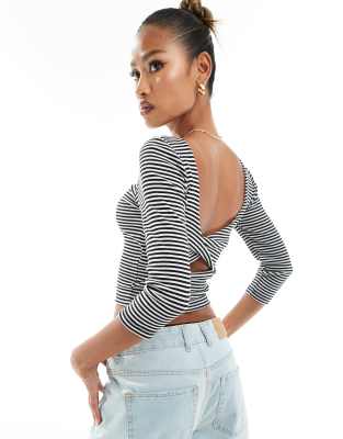 ASOS DESIGN - Gestreepte top met open, gedraaide achterkant