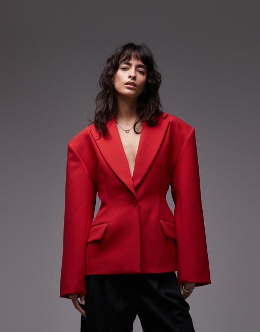 ASOS DESIGN - Gestructureerde blazer met aansluitende taille in rood