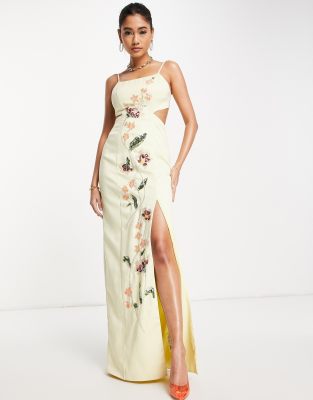 ASOS DESIGN - Gestructureerde maxi jurk met bloemenversiering