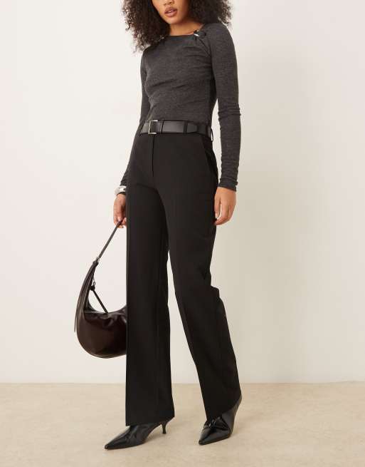 ASOS DESIGN - Getailleerde smalle broek met rechte pijpen en riem in zwart