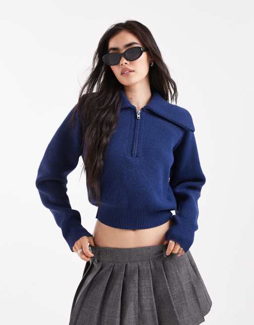 ASOS DESIGN - Getailleerde trui met kraagje en 1/2 rits in marineblauw