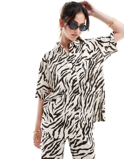 ASOS DESIGN - Getextureerd resortoverhemd met linnenlook en zebraprint, deel van co-ord set