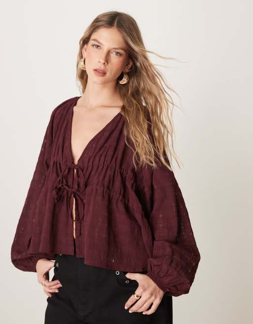 ASOS DESIGN - Getextureerde blouse met lage hals en strikdetail