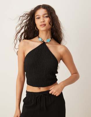 ASOS DESIGN - Getextureerde haltertop met kraaldetail in zwart