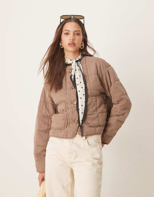 ASOS DESIGN - Gewatteerd cropped jack zonder kraag in champignon