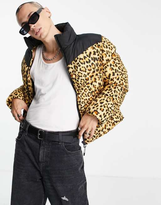 ASOS DESIGN - Gewatteerd puffer jack met luipaardprint en contrasterende schouderpas