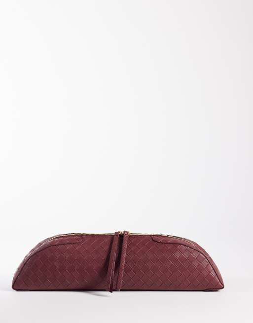 ASOS DESIGN - Geweven clutch etui in bordeauxrood