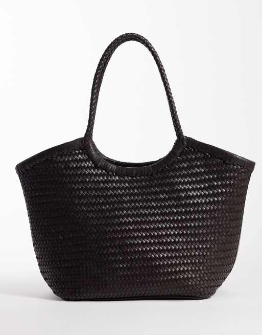 ASOS DESIGN - Geweven leren mandtas in chocoladebruin