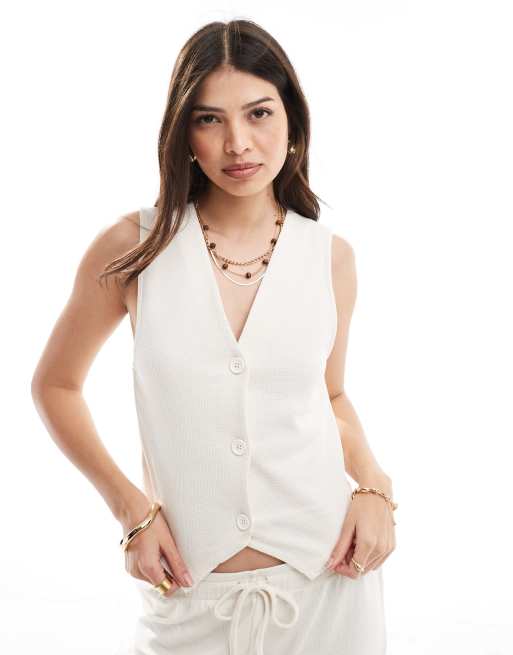 ASOS DESIGN - Gilet met wafelstructuur in kokosmelk, deel van co-ord set