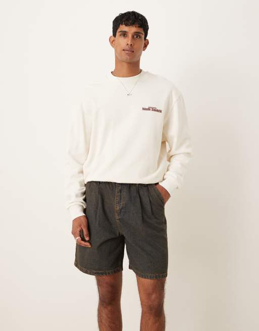 ASOS DESIGN - Halflange denim jort met dubbele plooien in bruin