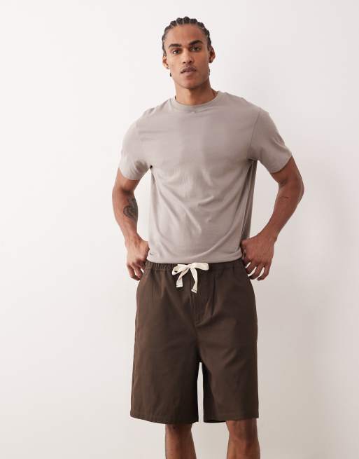 ASOS DESIGN - Halflange jort met trekkoord in bruine keperstof