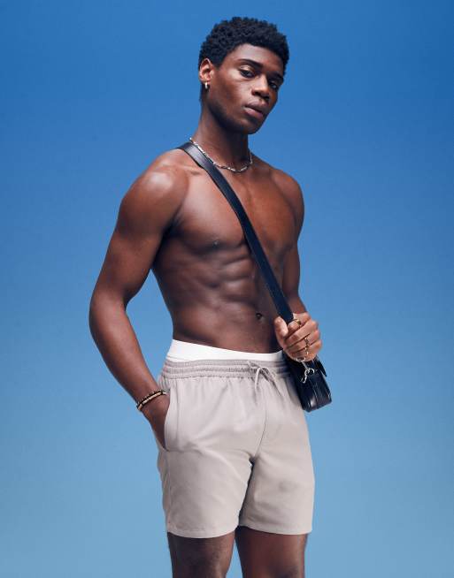 ASOS DESIGN - Halflange zwemshort in grijs