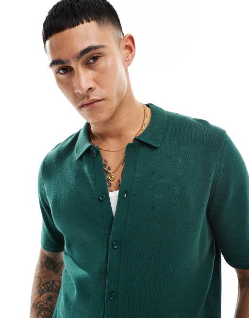 ASOS DESIGN - Halfzware gebreide katoenen polo met knoopsluiting in groen, deel van co-ord set
