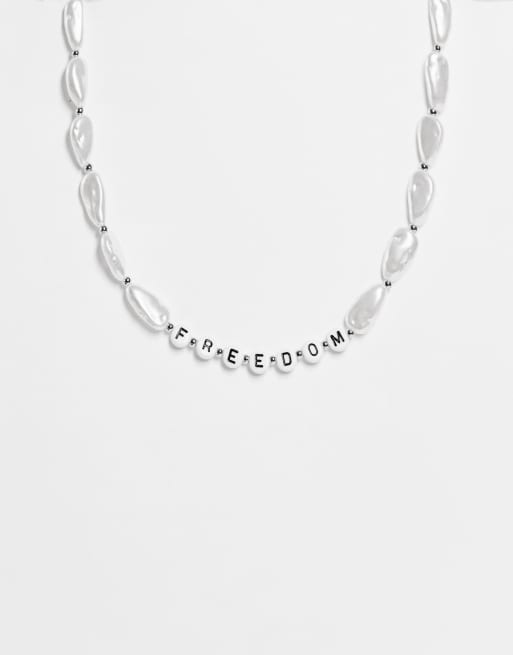 ASOS DESIGN - Halfzware ketting met imitatieparels en 'Freedom' tekst