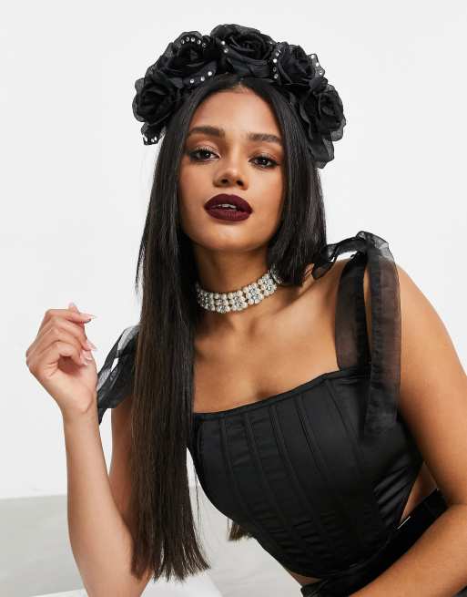 ASOS DESIGN - Halloween-haarband met bloemen en kristallen in zwart