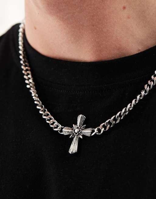 ASOS DESIGN - Halsketting met groot kruis in gepolijst zilver