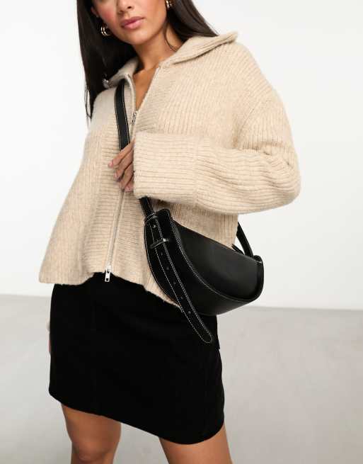 ASOS DESIGN - Halvemaanvormige crossbody slingtas met contrasterende stiksels in zwart