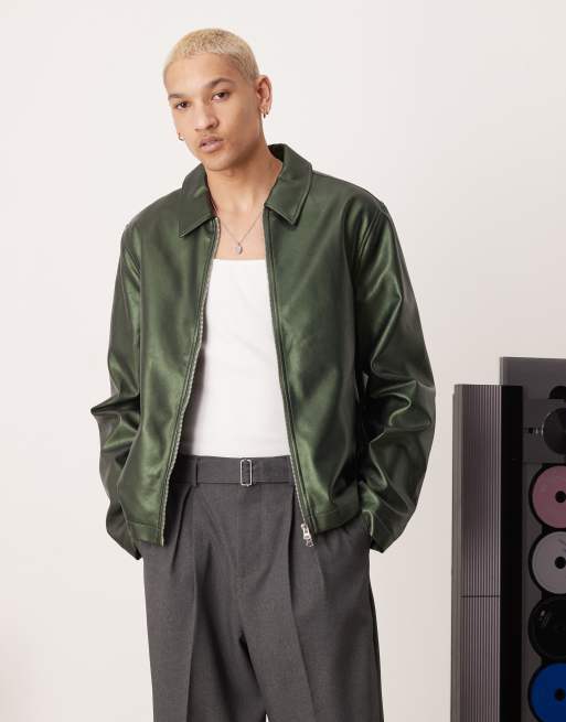 ASOS DESIGN - Harrington jack van imitatieleer in metallic groen