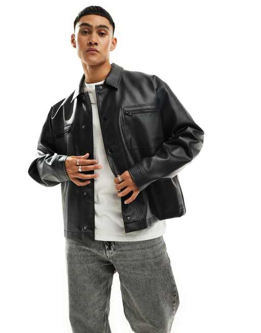 ASOS DESIGN - Harrington jack van imitatieleer met ritsdetail in zwart met wassing