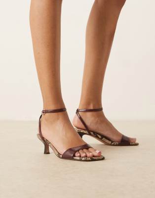 ASOS DESIGN - Heart Throb - Minimalistische sandalen met kitten hak in bordeauxrood en slangenprint