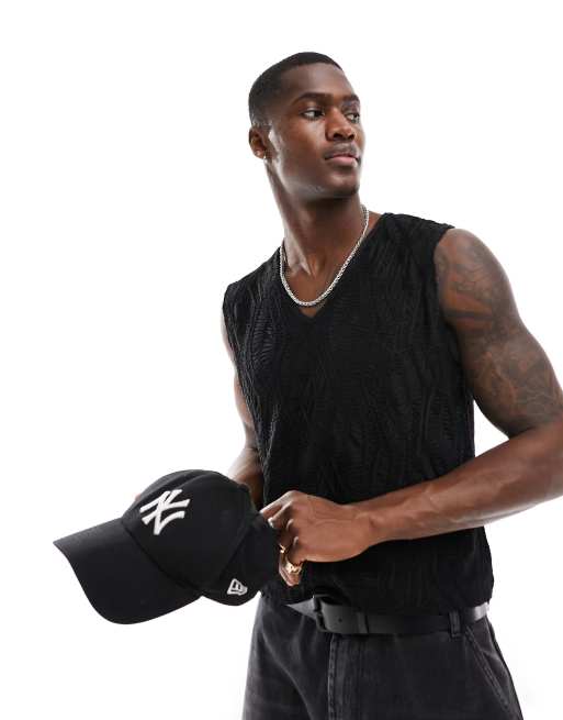 ASOS DESIGN - Hemd in zwart met golvende textuur