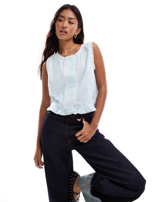 ASOS DESIGN - Hemdje van linnenmix met knoopsluiting in blauw