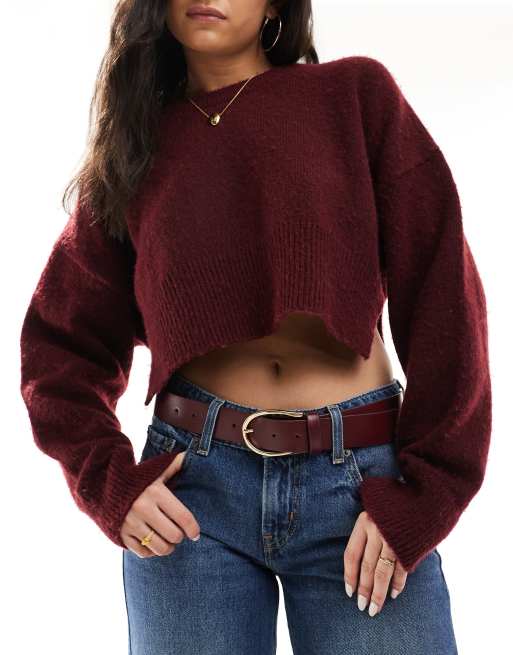 ASOS DESIGN - Heup- en taille jeans riem met halvemaanvormige gesp in bordeauxrood