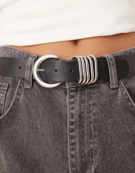 ASOS DESIGN - Heup- en tailleriem in zwart met meerdere ringetjes in zilverkleur