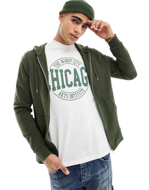ASOS DESIGN - Hoodie met rits in kakigroen