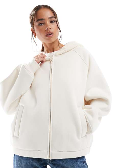 ASOS DESIGN - Hoodie van scuba-achtige stof met capuchon en voering van borg in crème