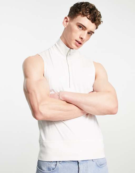 ASOS DESIGN - Hoogsluitend hemd van zware stof met rits in crème