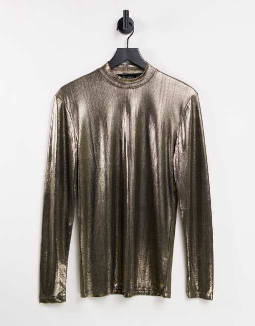 ASOS Design - Hoogsluitend T-shirt met lange mouwen in goud metallic