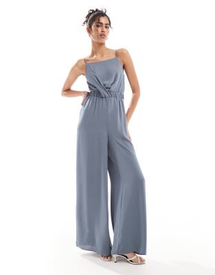 ASOS DESIGN - Hoogsluitende jumpsuit met gedraaide voorkant in blauw