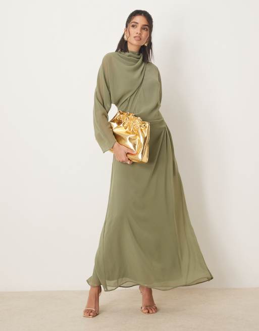 ASOS DESIGN - Hoogsluitende maxi-jurk in groen
