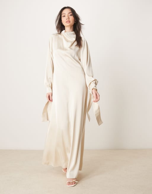 ASOS DESIGN - Hoogsluitende maxi jurk met blousonmouwen in gebroken wit