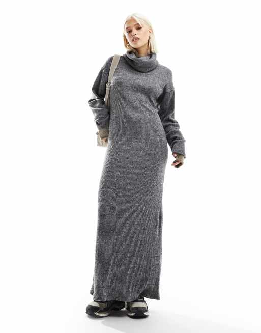 ASOS DESIGN - Hoogsluitende maxi jurk met coconmouwen in grijs
