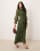 ASOS DESIGN - Hoogsluitende maxi-jurk met gerimpelde tailleband in donkergroen
