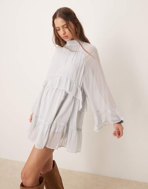 ASOS DESIGN - Hoogsluitende mini jurk met ruches in blauw