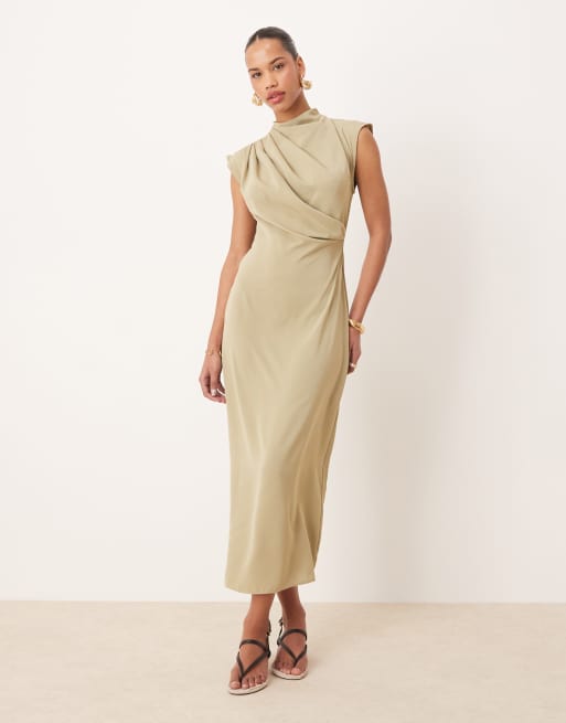 ASOS DESIGN - Hoogsluitende mouwloze midi-jurk met gedrapeerde halslijn in saliegroen