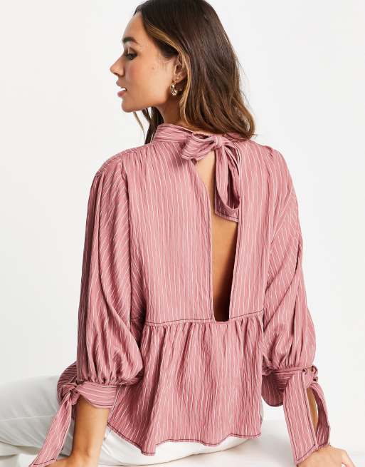 ASOS DESIGN - Hoogsluitende top met peplum en strepen in steenrood