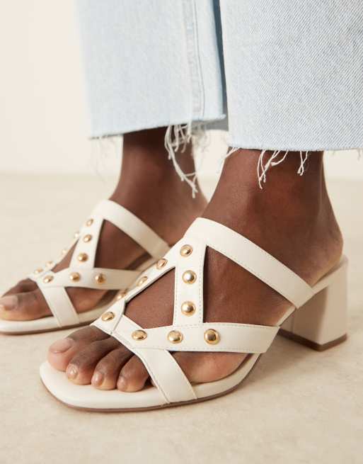 ASOS DESIGN - Howdy - Muiltjes met bandjes, studs en halfhoge hak in gebroken wit