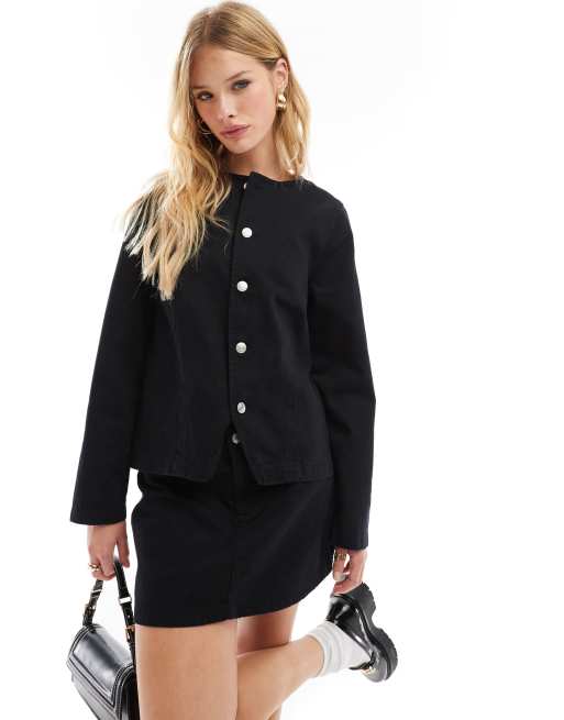 ASOS DESIGN - Jack met knoopsluiting en lange mouwen in zwart