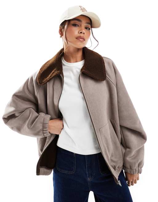 ASOS DESIGN - Jack van suedette met rits en borgkraag in bruin