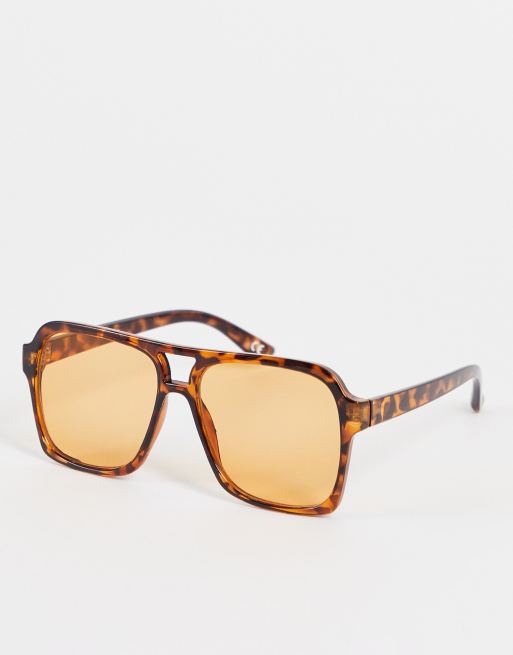 ASOS DESIGN - Jaren 70 stijl aviator zonnebril in tortoise met amberkleurige glazen