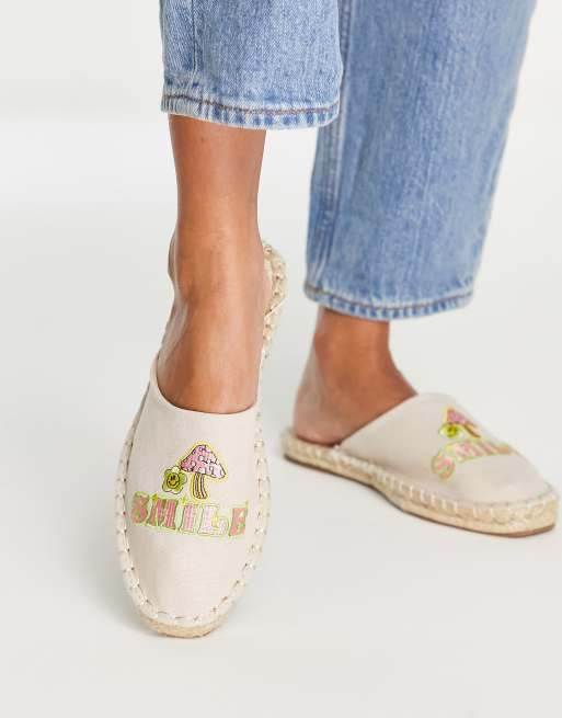 ASOS DESIGN - Jax - Geborduurde muiltjes in naturel