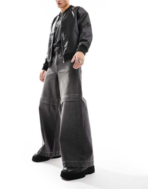 ASOS DESIGN - Jeans met extreem wijde pijpen en ritsen bij de knie in zwart met wassing