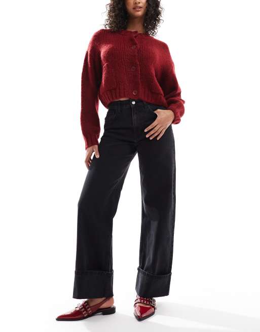 ASOS DESIGN - Jeans met omgeslagen zoom in verwassen zwart