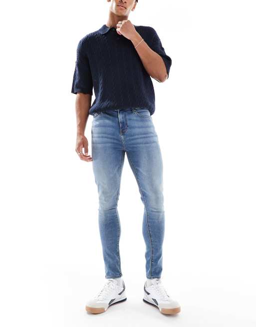 ASOS DESIGN - Jeans met powerstretch in mid-wash blauw