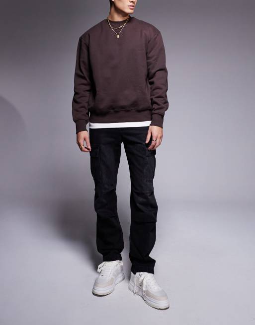 ASOS DESIGN - Jeans met rechte pijpen en cargodetail in zwart met wassing